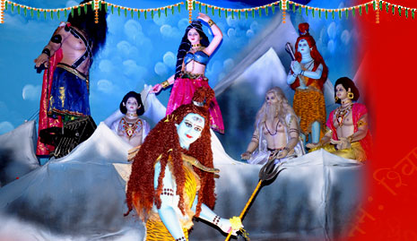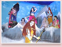 peoples of groom's side as this is the marriage day of Shiva and Parvati. The canopies and props came down from the hill of the